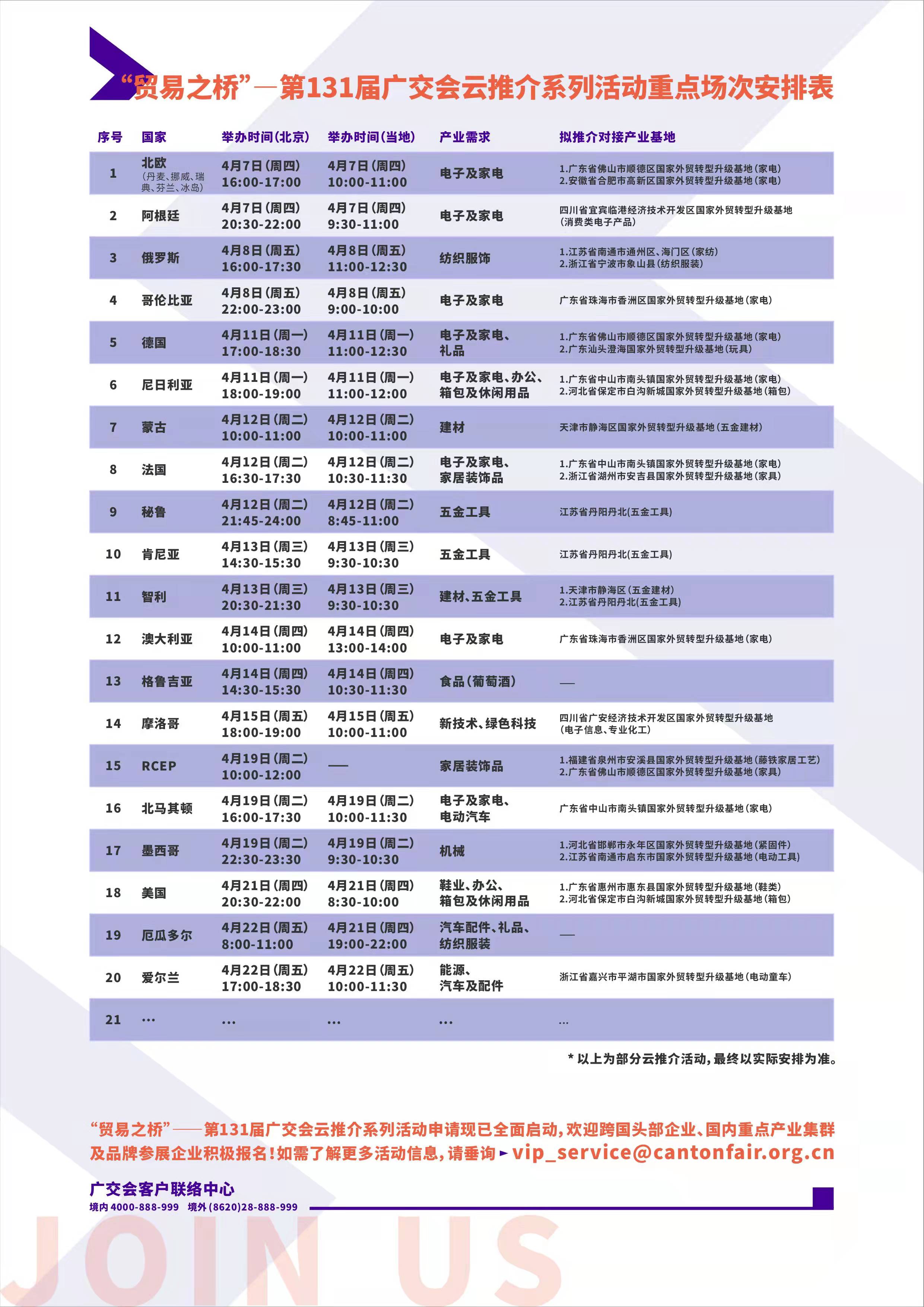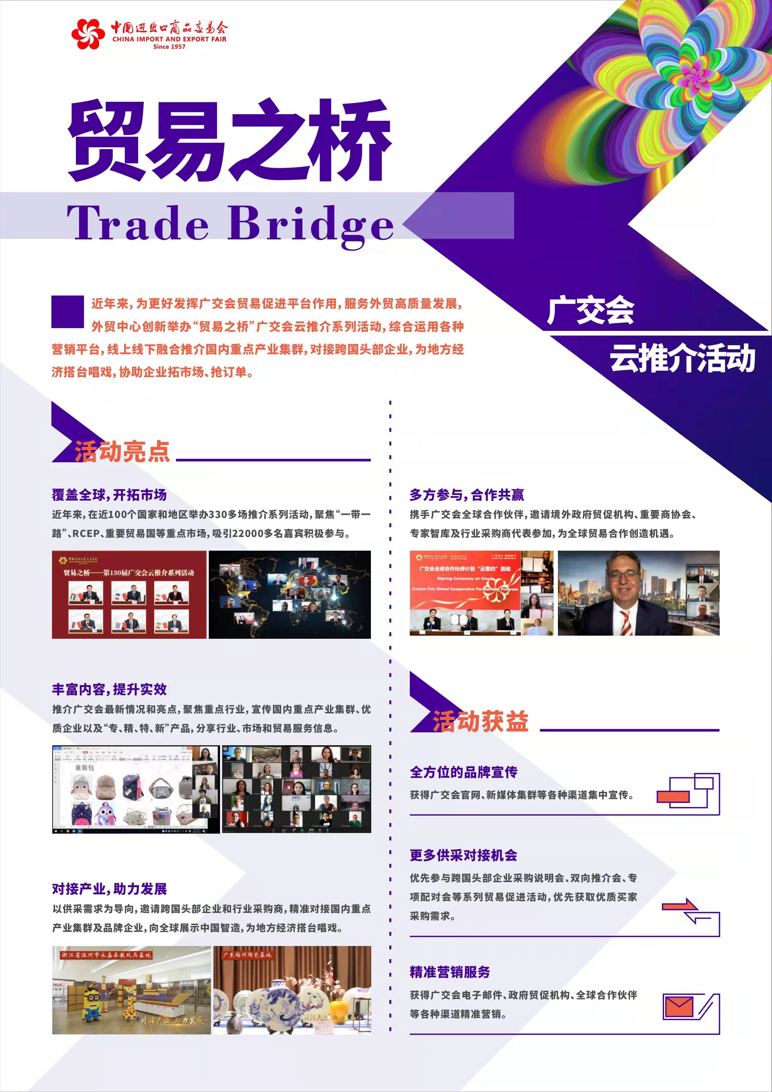 “贸易之桥”——第131届交会云推介系列活动重点场次安排表