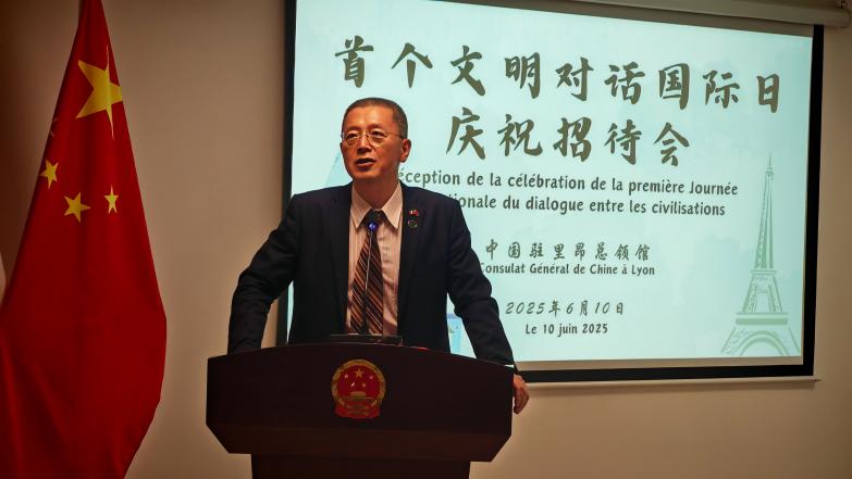 le 10 juin 2025, monsieur yu jiang, consul général de chine à lyon, a présidé une réception à l’occasion de la journée internationale du dialogue entre les civilisations. il a regardé avec les invités dont mme isabelle ramet, conseillère régionale d’auvergne-rhône-alpes, m. jean-stéphane chaillet, adjoint au maire du 2e arrondissement de lyon, m. philippe valentin, président de la cci lyon métropole saint-etienne roanne, ainsi que m. manuel jobert, vice-président de l’université lyon 3, le discours vidéo prononcé par m. wang yi lors de la célébration de la première journée internationale du dialogue entre les civilisations des nations unies.