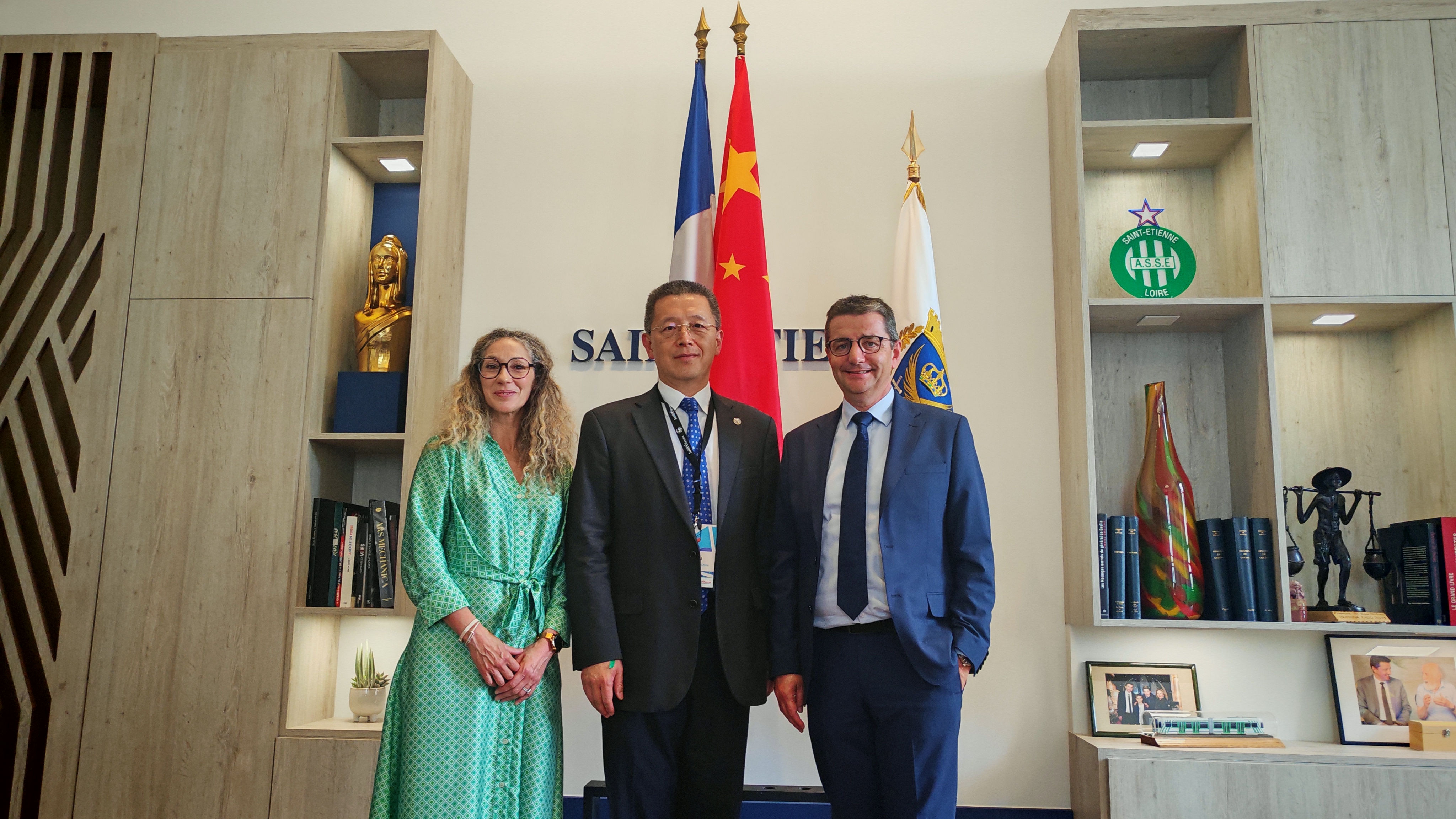 2025年5月21日,驻里昂总领事于江会见领区圣埃蒂安市市长佩尔德里奥。对方回顾圣埃蒂安同友城徐州友好交流成果,介绍圣市经济优势,表示当今世界存在走向封闭的逆流,圣市坚定支持开放合作,愿同中方加强交流,拓展经贸、教育、文化等各领域合作。