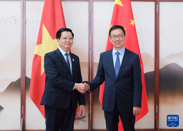 2025年9月16日,国家副主席韩正在广西南宁分别会见来华出席第22届中国—东盟博览会暨中国—东盟商务与投资峰会的缅甸总理纽梭、老挝国家副主席本通、柬埔寨副首相兼内阁办公厅大臣翁赛维索、越南副总理梅文政。